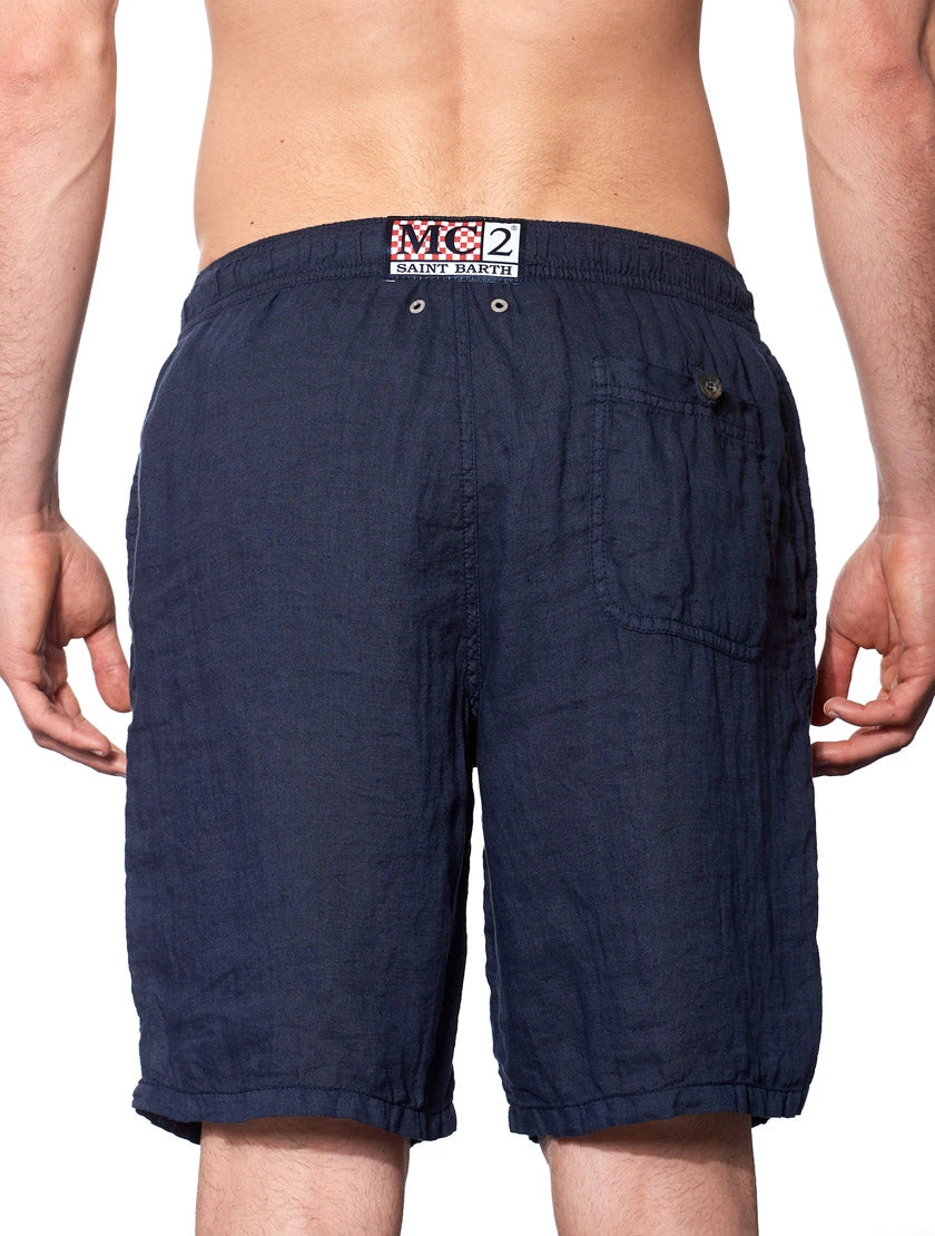 Blue linen long swim shorts for men,
