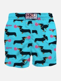 MC2 Saint Barth Boy Swim Shorts With Dachshund And Big Babol Print | BIG BABOL® SPECIAL EDITION