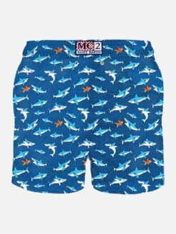 fluo details, waterproof zipped pockets, quick drying, mid-lenght, light net lining, elasticated waistband, drawstring fastening, back pocket with button.