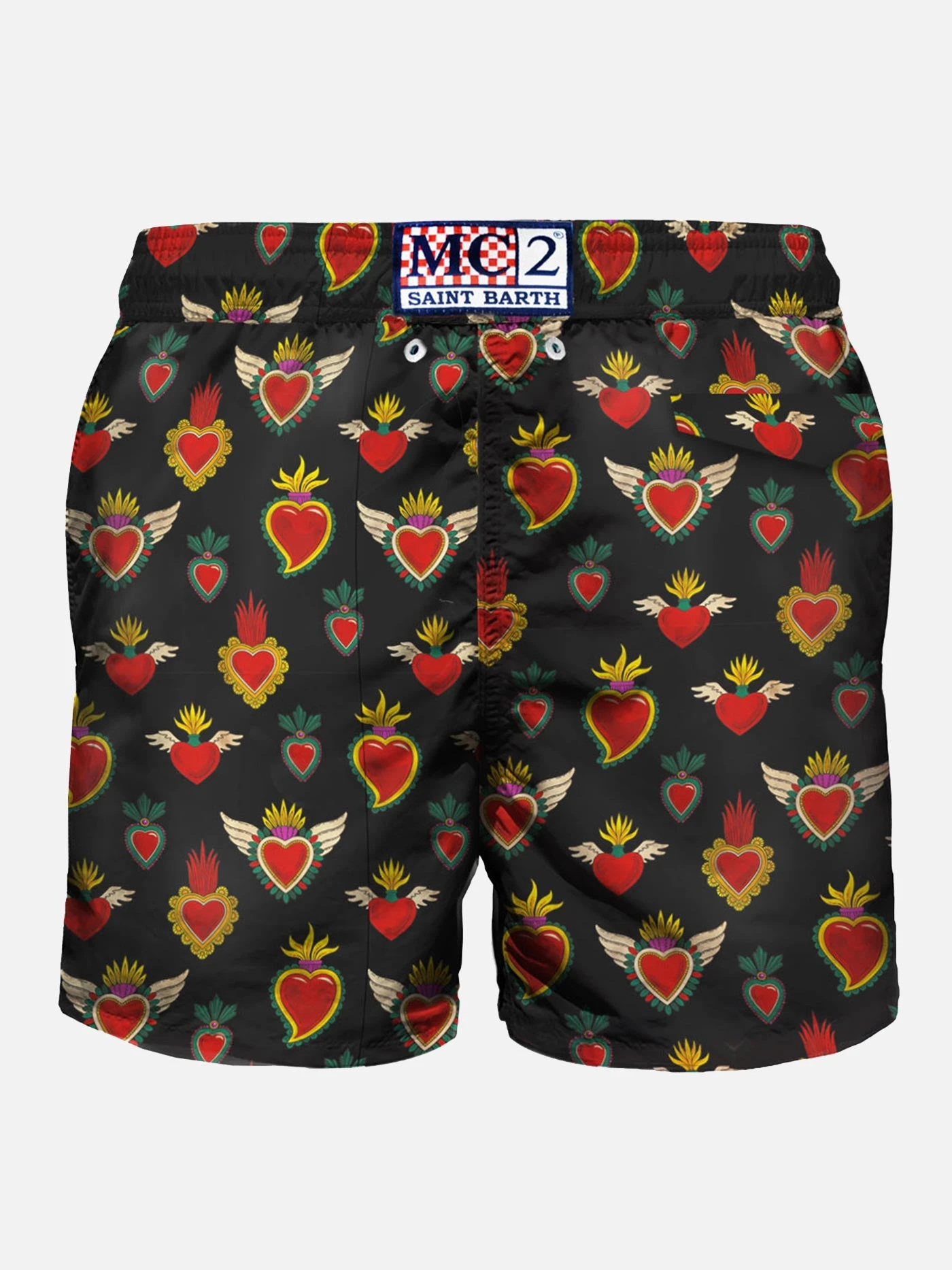Light Fabric Man Swim Shorts Sacred Hearts Print