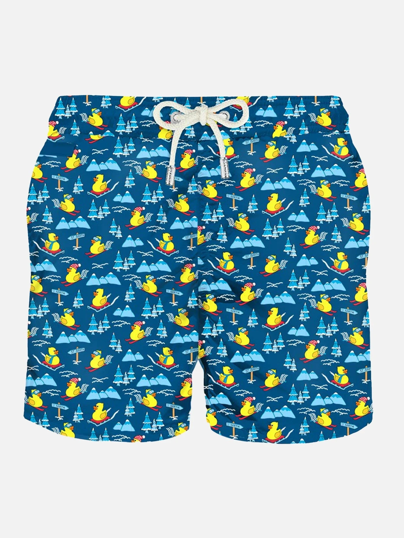 Micro skying ducky all over print on blue background