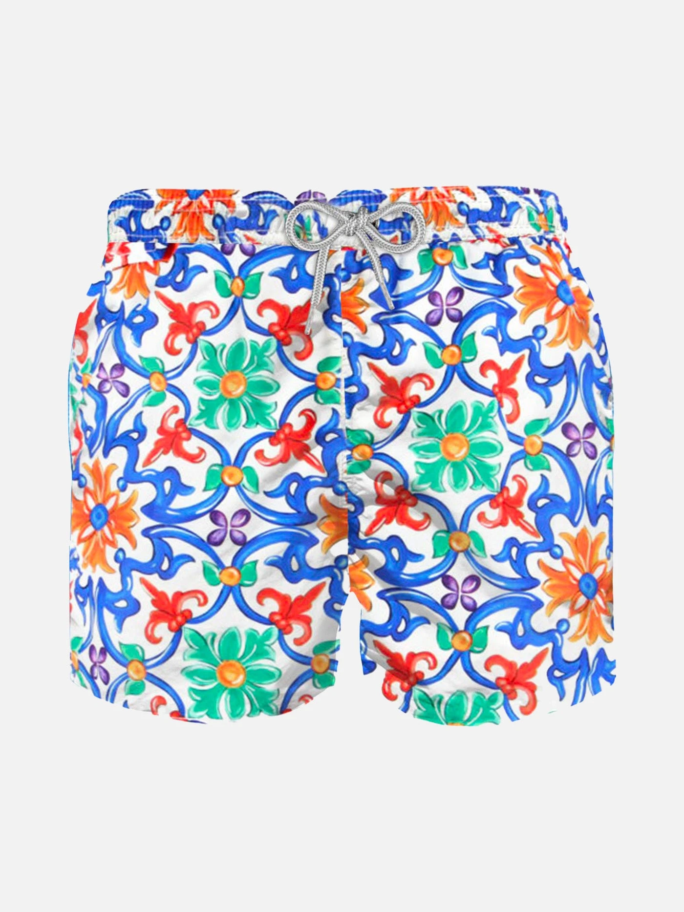 Boys’ Swim Trunks, mid lenght, majolica tile all over print, regular fit,