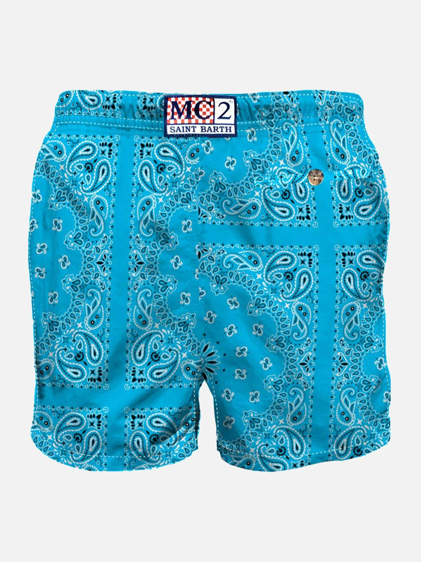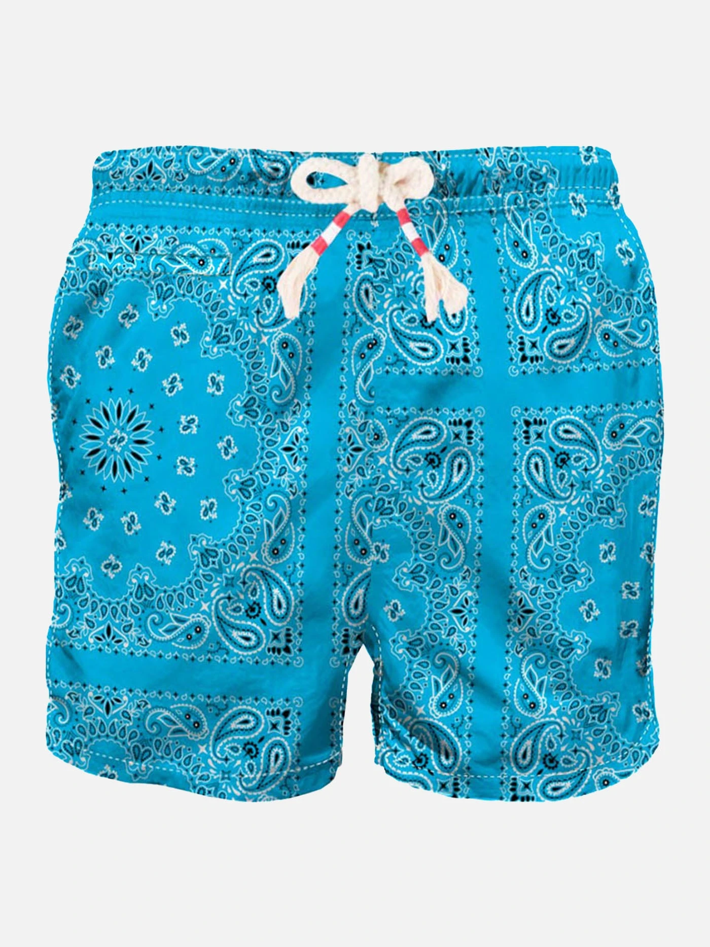 Be the first to review “Man Swim Shorts With Light Blue Bandanna Print” Cancel reply
