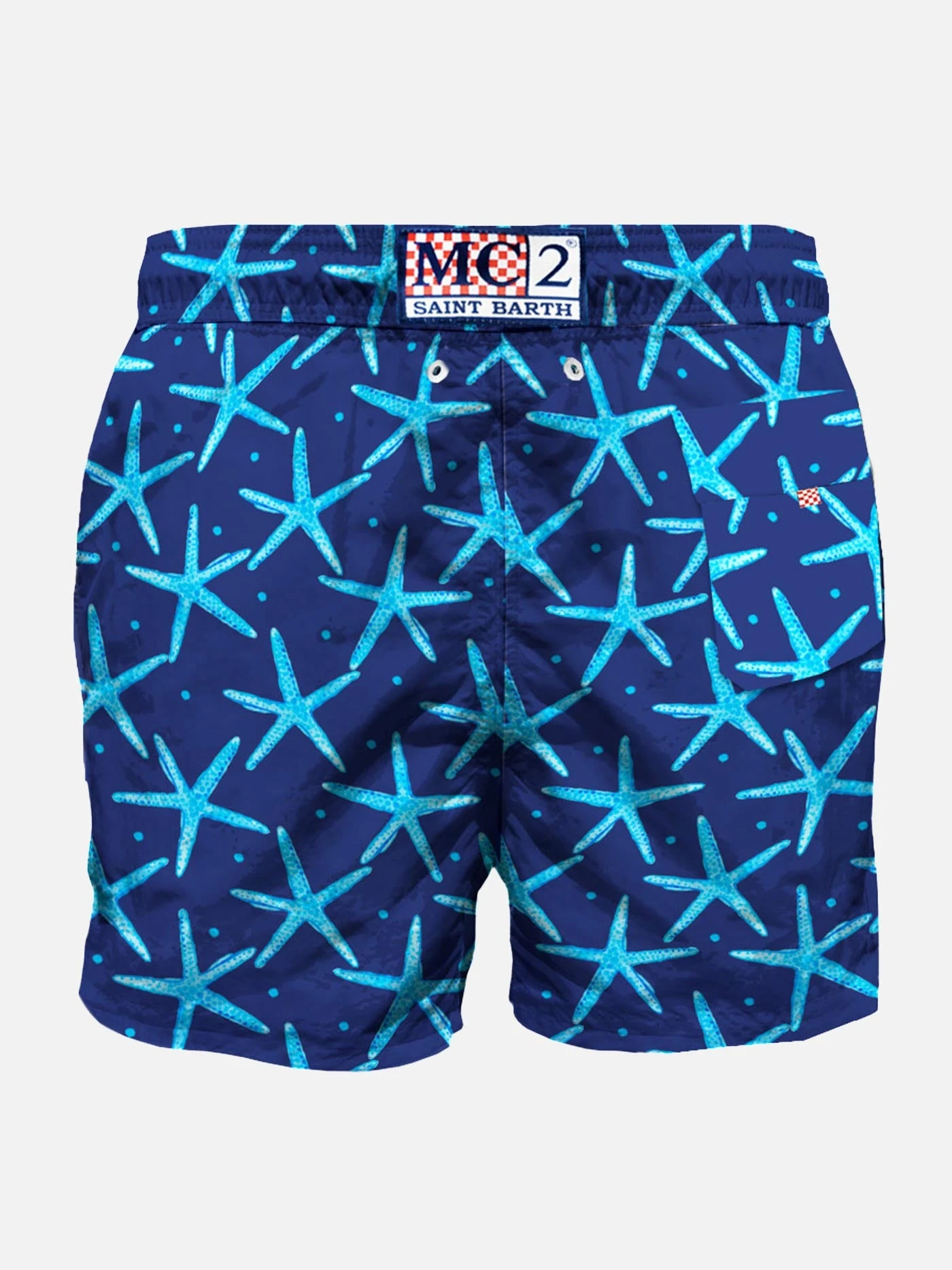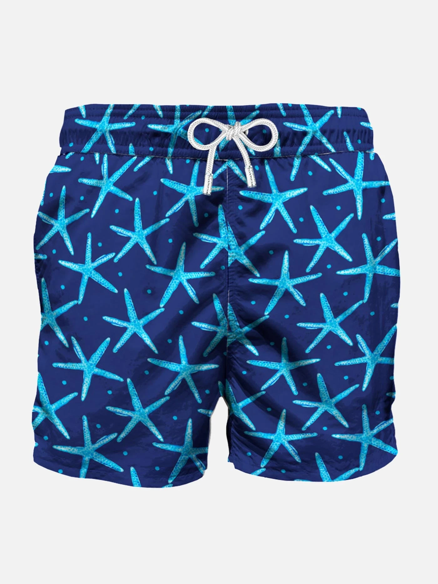 Seastar all over print, Swim Short mid-length, regular fit, with white microfiber, comfortable drawstring waist, inside ergonomic brief, pockets on both sides, backside classic pocket with velcro closure.