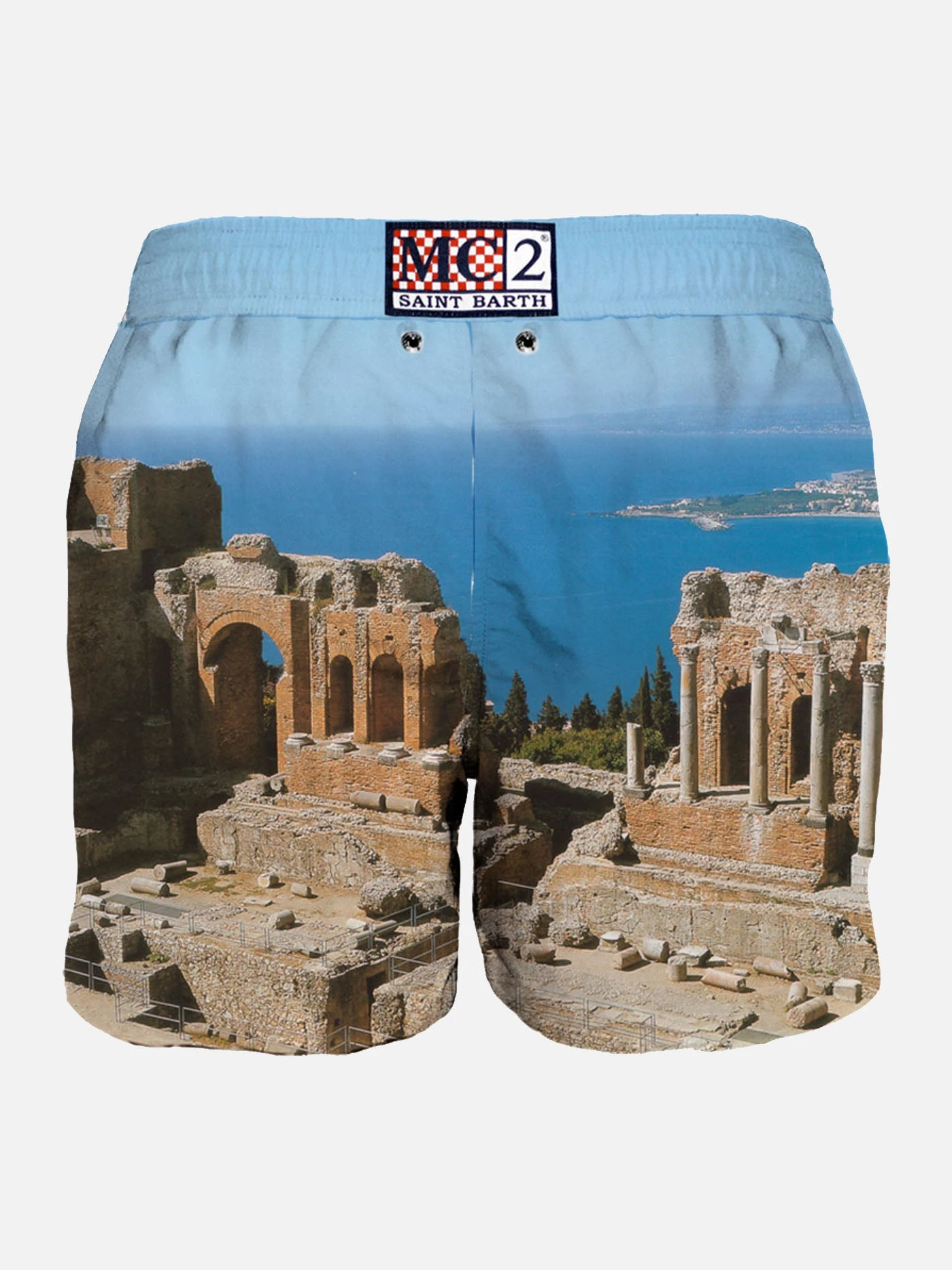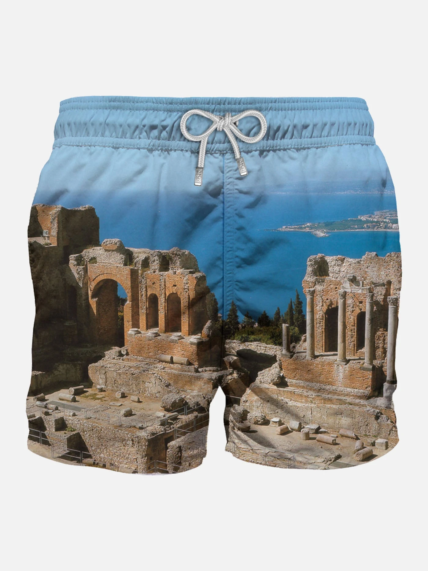 photographic all over print, swim trunk mid-lenght, regular fit, multicolor microfibre, comfortable drawstring waist, inside ergonomic brief, drawcord closure.